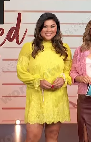 Jennifer Chan's yellow lace dress on Access Hollywood