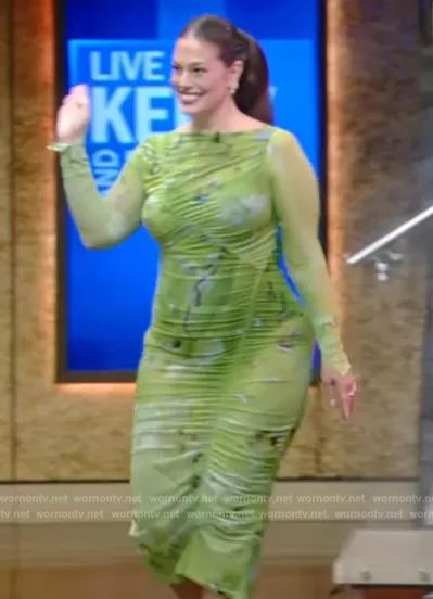 Ashley Graham's green floral ruched dress on Live with Kelly and Mark