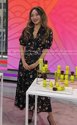 Keke's black floral v-neck jumpsuit on GMA Strahan Sara And Keke
