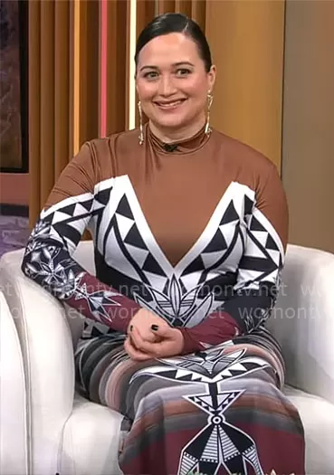 Lily Gladstone's printed long sleeve dress on CBS Mornings