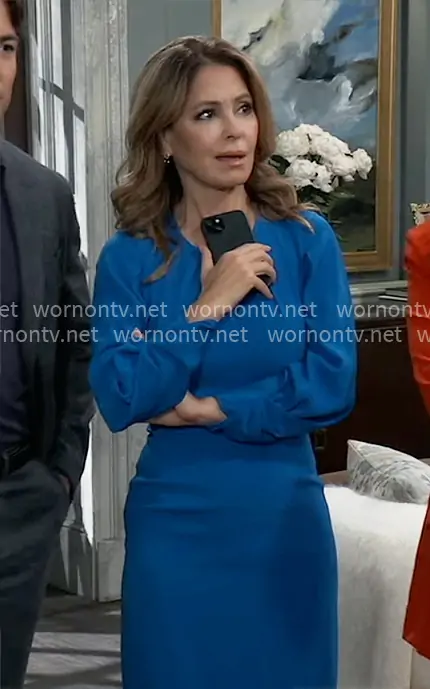 Julie's blue floral-sleeve jacket on Days of our Lives
