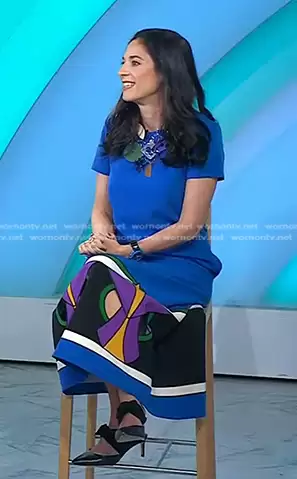 Julia Louis-Dreyfus's teal floral keyhole dress on Live with Kelly and Mark