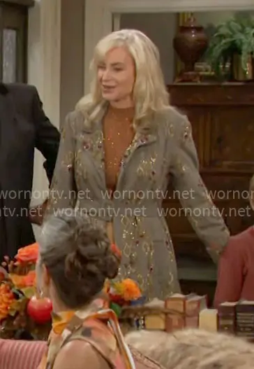 Ashley's floral bead embellished coat on The Young and the Restless