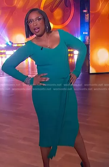 Jennifer's green ribbed belted dress on The Jennifer Hudson Show