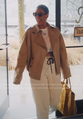 Jessel's beige double breasted jacket and top on The Real Housewives of New York City