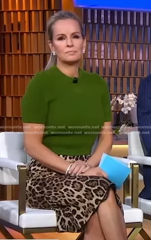 Jennifer's green short sleeve sweater and leopard skirt on Good Morning America