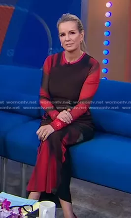 Meghan Trainor's colorblock cardigan and skirt on Live with Kelly and Mark
