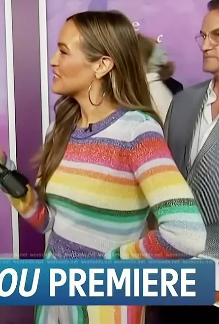 Emily Orozco's metallic stripe sweater on Access Hollywood