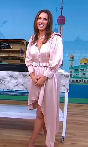 Sarah Eggenberger's pink button front high and low dress on Good Morning America