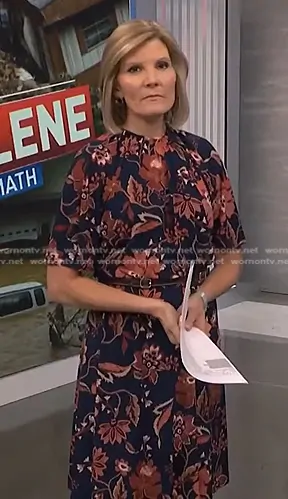Alison Triessl's navy tie neck dress on Access Hollywood