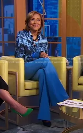 Gayle King's turquoise cowl neck dress on CBS Mornings