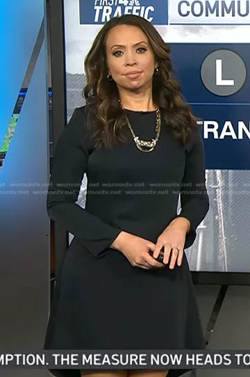 Adelle's navy long sleeve mini dress on Today