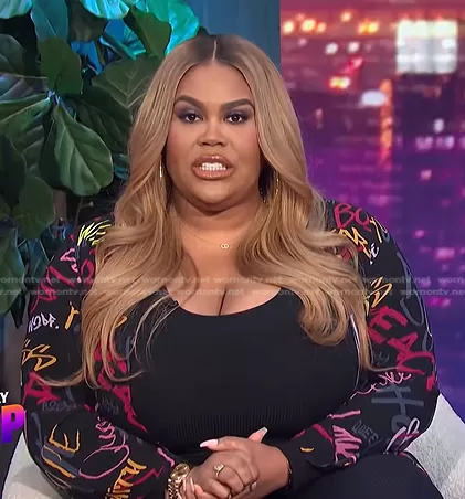 Nina's black long sleeve mesh top on E! News Daily Pop