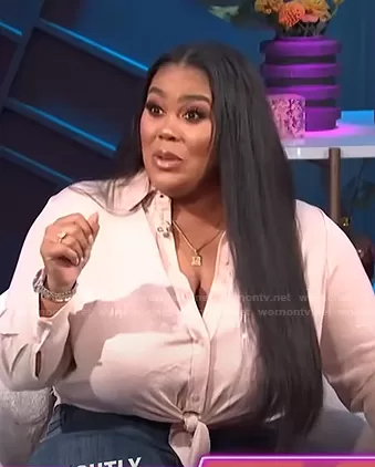 Nina's sequin tie front blouse on E! News Nightly Pop