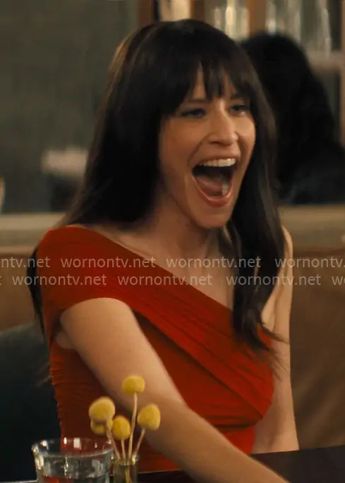 Esther's red asymmetric shoulder top on Nobody Wants This