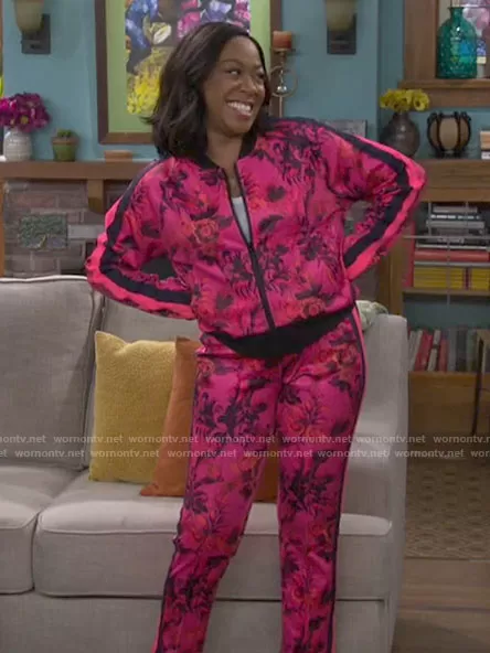 Tina's pink floral track suit on The Neighborhood
