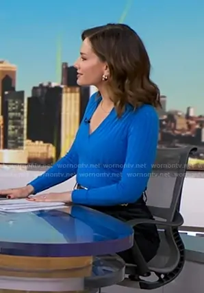 Rebecca’s blue ribbed collared top on Good Morning America