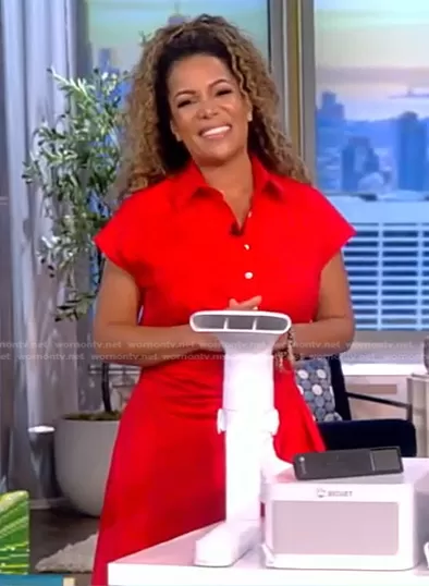 Sunny's red short sleeve shirtdress on The View