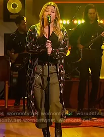 Kelly's leopard print long cardigan on The Kelly Clarkson Show