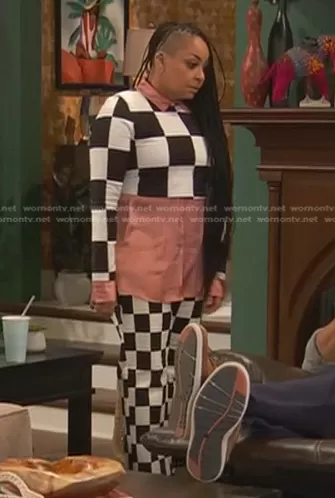 Raven's checkerboard print top and pants on Ravens Home