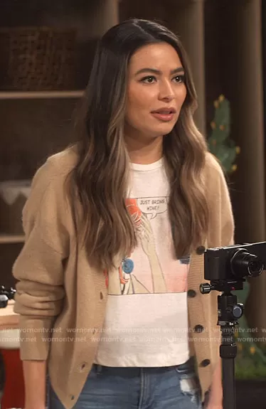 Carly's polka dot top and contrast trim cardigan on iCarly