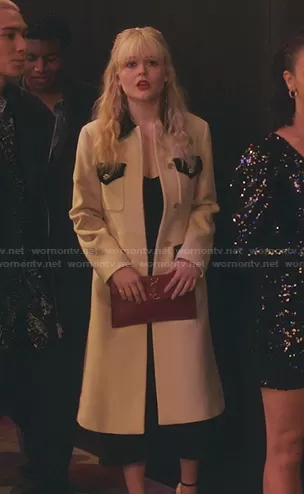 Audrey's white contrast detail coat on Gossip Girl