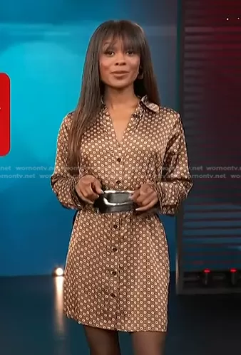 Zuri's brown floral shirtdress on Access Hollywood
