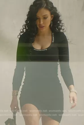 Bre's black Alexander Wang logo mini dress on Selling Sunset