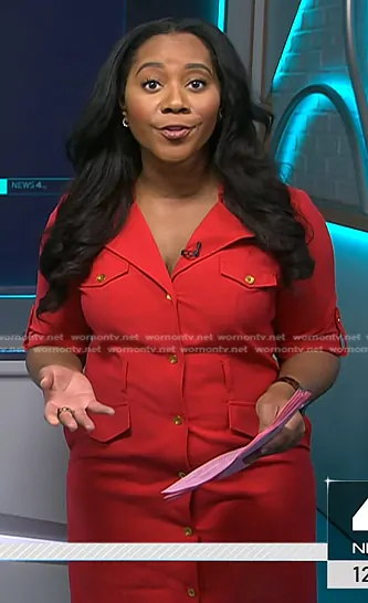 Kay Angrum's red safari dress on NBC News Daily