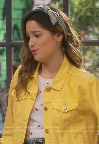 Lex's stripe denim jacket and printed tee on Side Hustle
