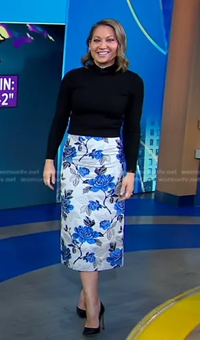 Jennifer's grey floral skirt and caged sandals on Good Morning America