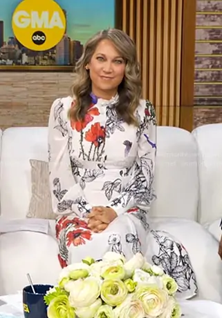 Ginger Zee's white floral print dress on The View