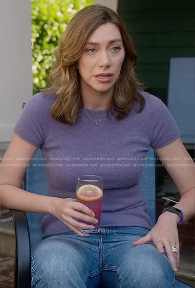 Allison's purple short-sleeved sweater top on So Help Me Todd