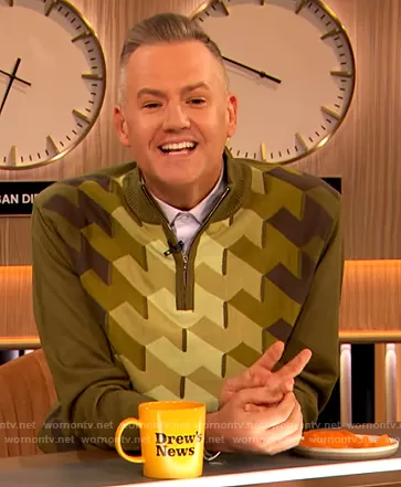Ross Mathew's green patterned sweater on The Drew Barrymore Show