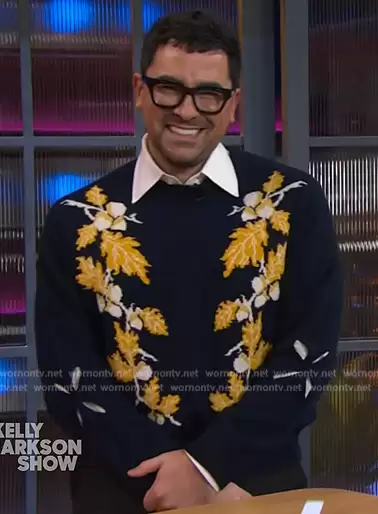 Dan Levy's floral print sweater on The Kelly Clarkson Show