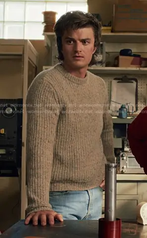 Lucas's blue WSQK print sweatshirt on Stranger Things