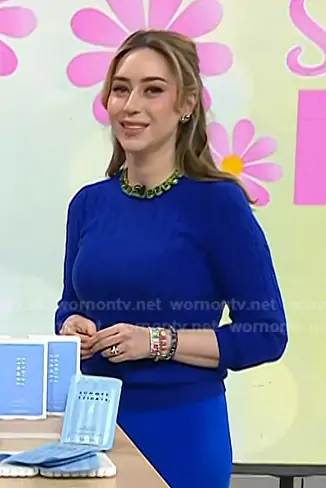 Dr. Shereene Idriss's blue cable knit sweater and neckalce on Today