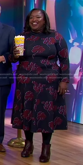 Kelley L. Carter's navy floral mock neck dress on Good Morning America