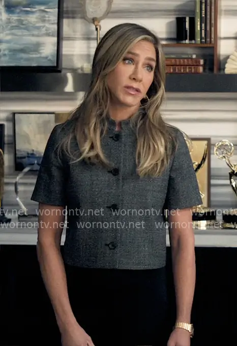 Stella's brushstroke print bomber jacket and skirt set on The Morning Show