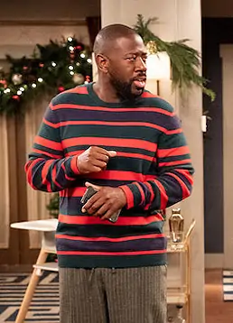 Malcolm's blue textured stripe shirt on The Neighborhood
