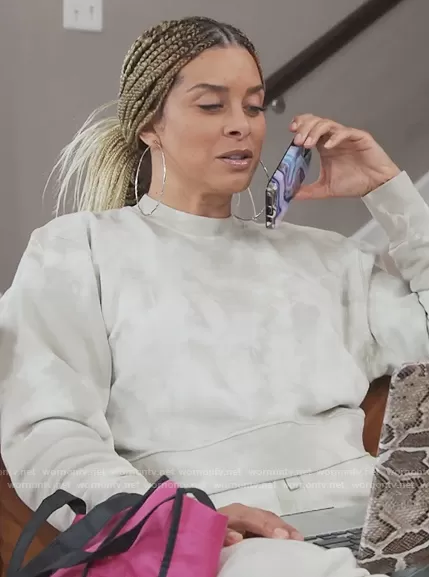 Robyn's gray tie dye sweatshirt on The Real Housewives of Potomac