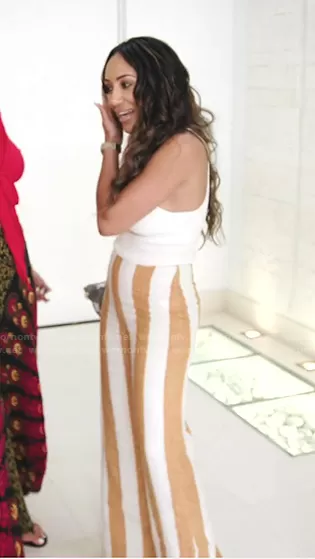 Melissa's beige and white striped pants on The Real Housewives Ultimate Girls Trip