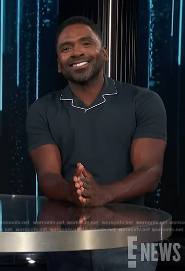 Justin's black piping polo and pants on E! news