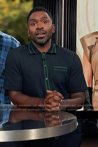 Cole Sprouse's navy sleeve stripe jacket on The Drew Barrymore Show