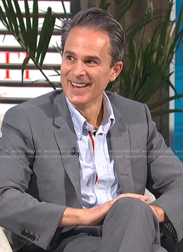 Gary Janetti's blue stripe trim shirt on E! News Daily Pop