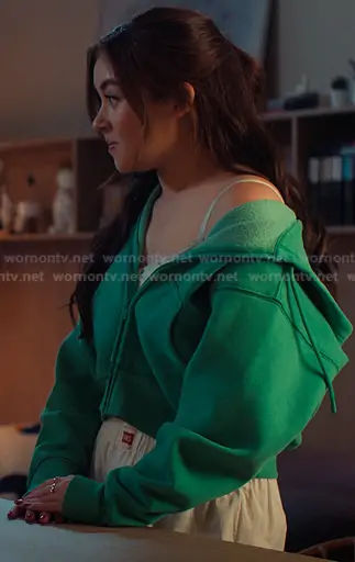 Ginny's green cropped sweatshirt and patchwork jeans on Ginny & Georgia