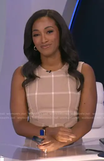 Brittany's beige windowpane sleeveless dress on Good Morning America