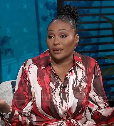 Cynthia Bailey's printed tie waist shirtdress on E! News Daily Pop
