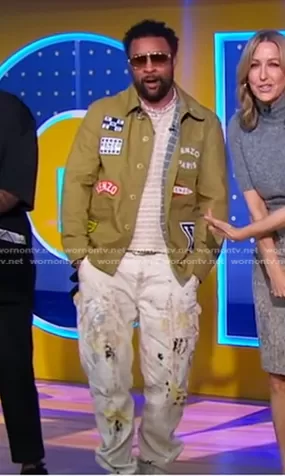 Shaggy's khaki patch shirt and splatter print pants on Good Morning America