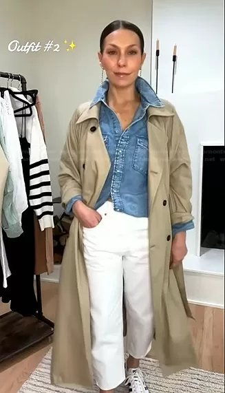 Melissa Garcia's denim shirt and beige trench coat on Today